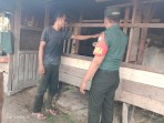 Babinsa Praka IK. Sinaga, Lakukan Cek Hewan Ternak Kambing Antisipasi Penyakit PMK, di Jalan Rangau