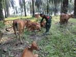 Babinsa Serda Zulkarnaen Lakukan Cek Hewan Ternak Sapi Antisipasi Penyakit PMK, di Desa Simpang Padang