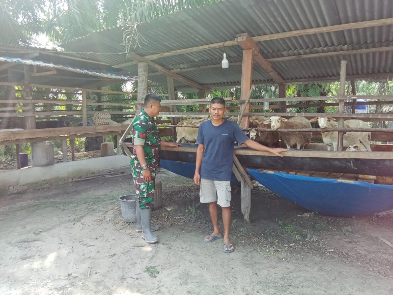 Babinsa Serda Paino, Cek Hewan Ternak Kambing Antisipasi PMK, di Desa Buluh Apo