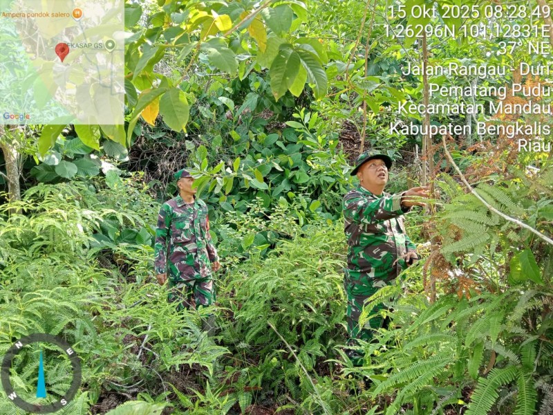 Babinsa Pelda Suprapto, Serma AW Prabowo, Serda Z.Panjaitan Patroli Karhutla di Kelurahan Pematang Pudu, Kecamatan Batsol