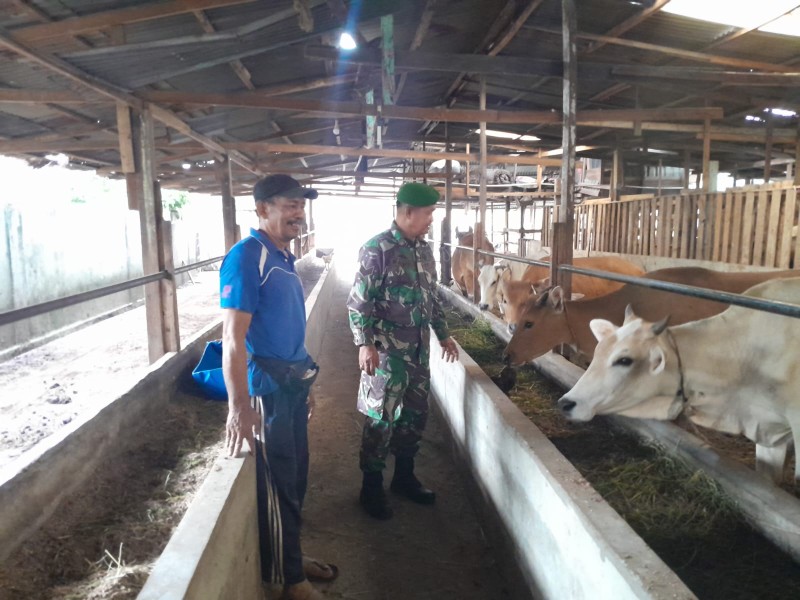 Babinsa Serma Fauzi Lakukan Cek Hewan Ternak Sapi Antisipasi Penyakit PMK, di Jalan Kenanga