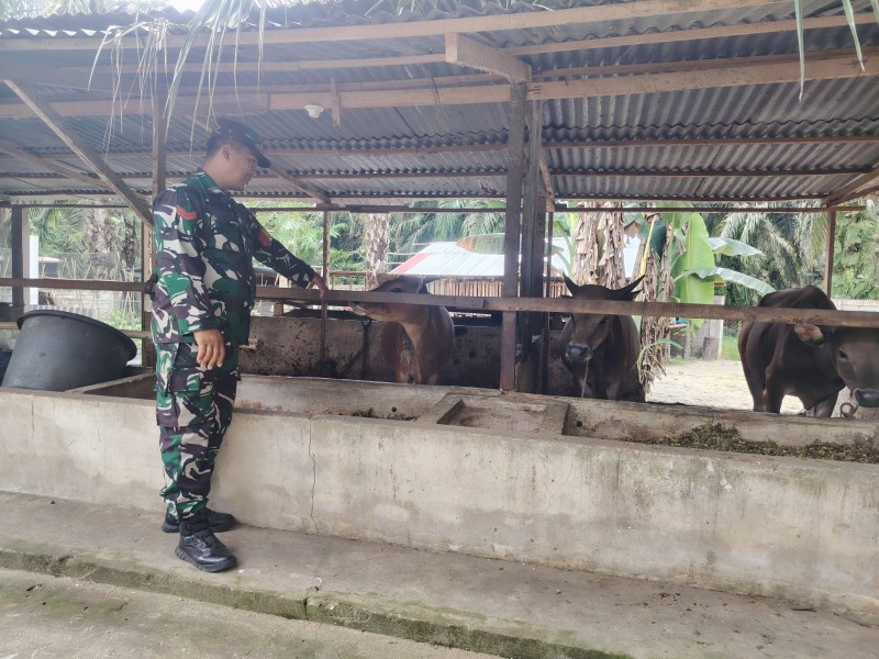 Babinsa Koptu Bambang Lakukan Cek Hewan Ternak Sapi Antisipasi Penyakit PMK, di Desa Pinggir