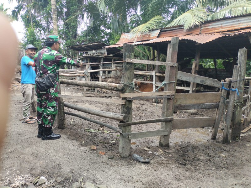Babinsa Sertu AT. Silaban, Lakukan Cek Hewan Ternak Sapi Antisipasi Penyakit PMK, di Desa Pinggir