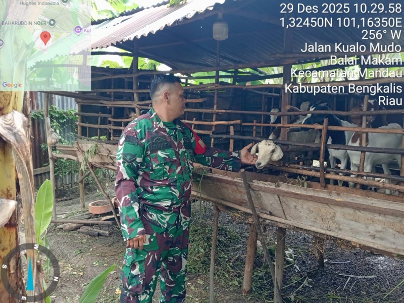 Untuk antisipasi hal tersebut, Kodim 0303/Bengkalis melalui Koramil 03/Mandau Babinsa Serda Z. Panjaitan terus melaksanakan kegiatan pemantauan Penyakit Mulut dan Kuku (PMK) hewan ternak sapi di Desa Balai Makam, Kecamatan Bathin Solapan, Kabupaten Bengkalis, Senin (29/12/2025).