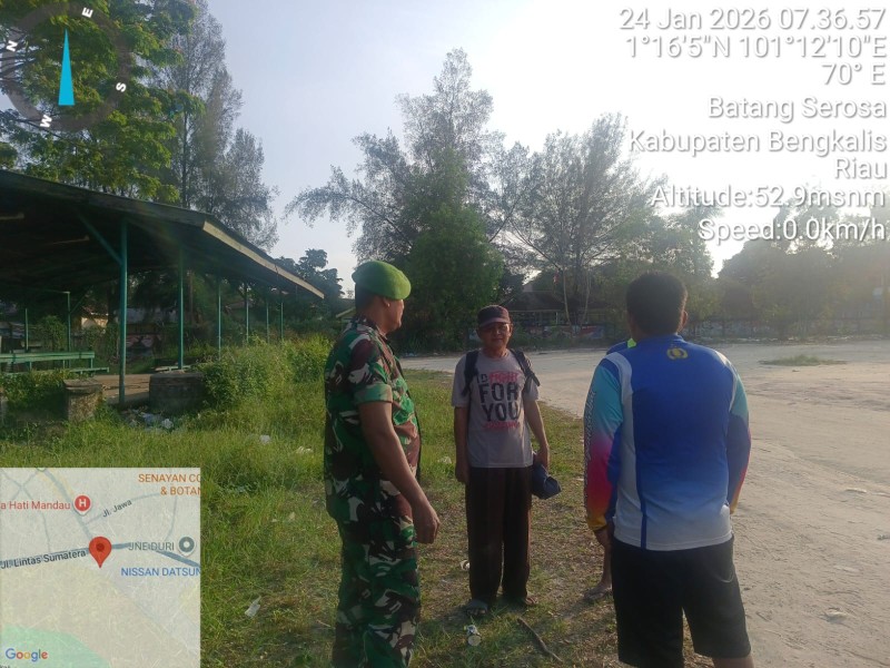 BENGKALIS, DETAK60.COM - Jajaran Koramil 03/Mandau melalui Babinsa Melaksanakan Kegiatan Komunikasi Sosialisasi (Komsos) Pembinaan wawasan kebangsaan serta Penyuluhan tentang nilai - nilai Pancasila serta pemahaman mengenai butir - butir pada, Sabtu (24/01/2026) kepada warga Keluraham Batang Serosa, Kecamatan Mandau, yang masuk dalam wilayah Kampung Pancasila, Kabupaten Bengkalis, Riau.