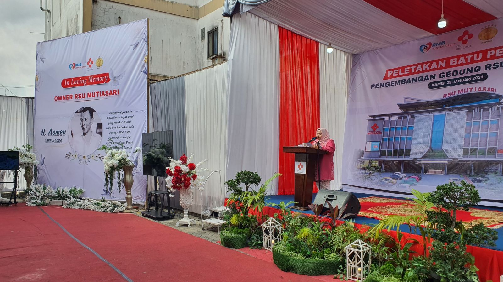 Dalam sambutan nya CEO RMB Doni Adelino, dalam sambutannya mengatakan bahwa pengembangan pembangunan RSU Mutia Sari merupakan tujuan dan niat baik dari owner RSU Mutia Sari almarhum Bapak H. Asmen.