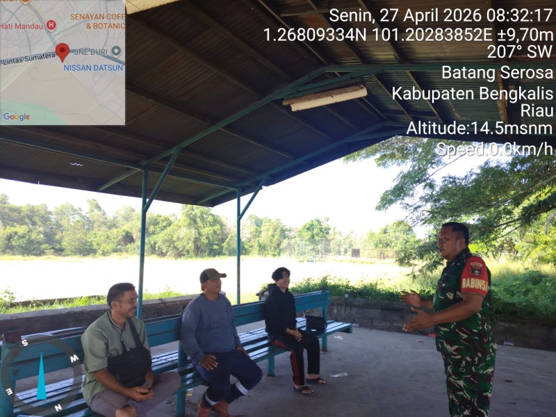 BENGKALIS, DETAK60.COM - Jajaran Koramil 03/Mandau melalui Babinsa Melaksanakan Kegiatan Komunikasi Sosialisasi (Komsos) Pembinaan wawasan kebangsaan serta Penyuluhan tentang nilai-nilai Pancasila serta pemahaman mengenai butir - butir pada, Senin (27/04/2026) kepada Warga Kelurahan Gajah Sakti, Kecamatan Mandau, Bengkalis, yang masuk dalam wilayah Kampung Pancasila, Kabupaten Bengkalis, Riau.