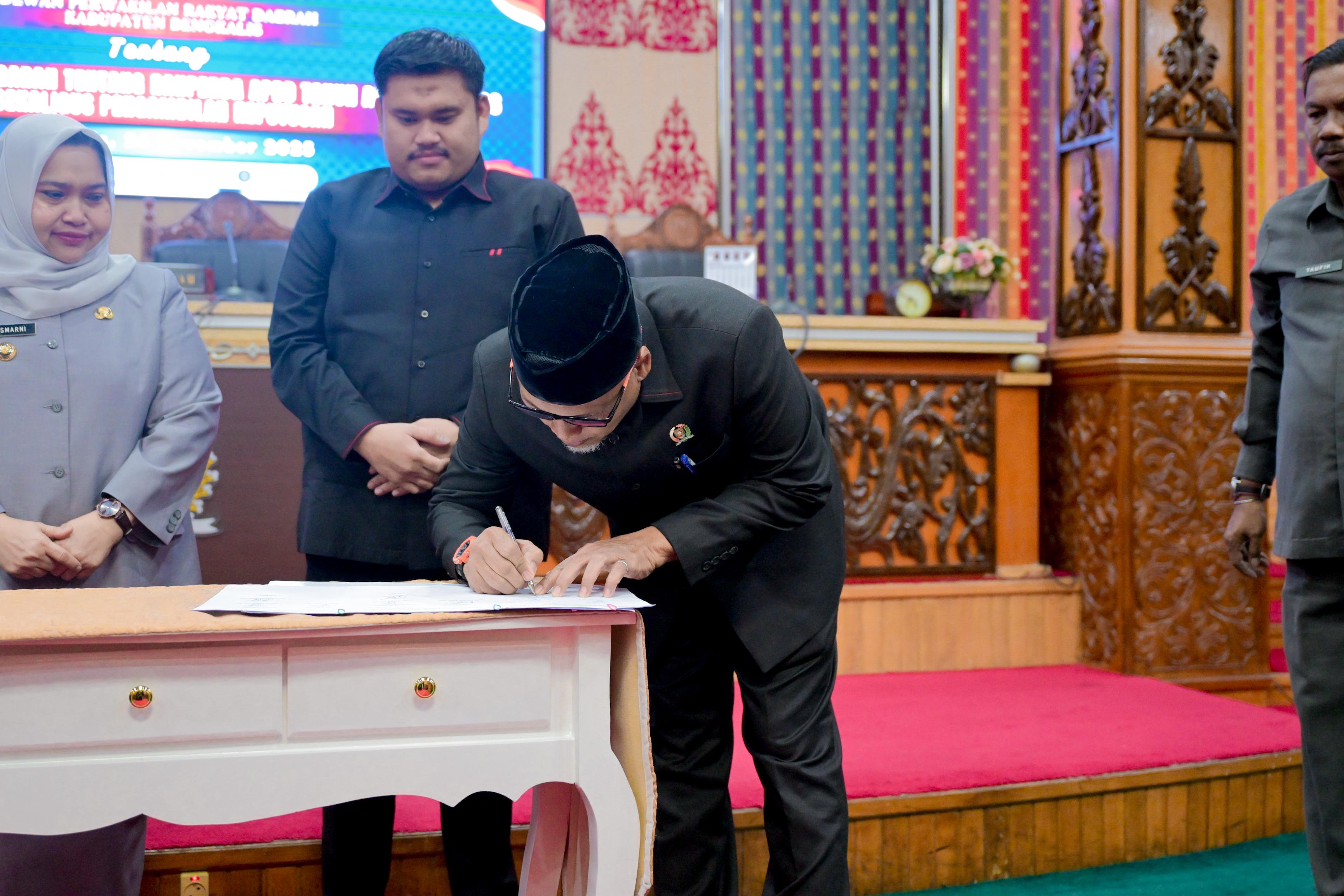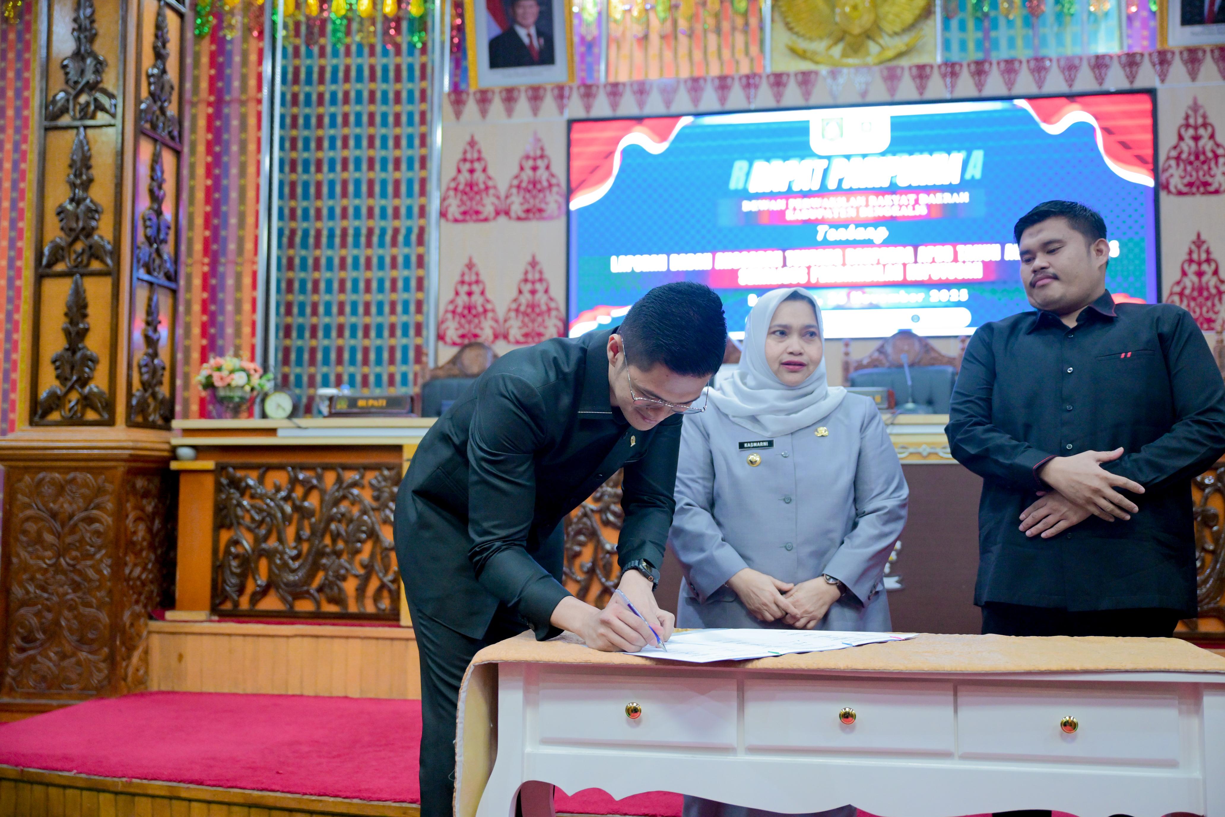 Ketua DPRD Bengkalis Septian Nugraha saat menandatangani kesepakatan APBD Bengkalis 2026