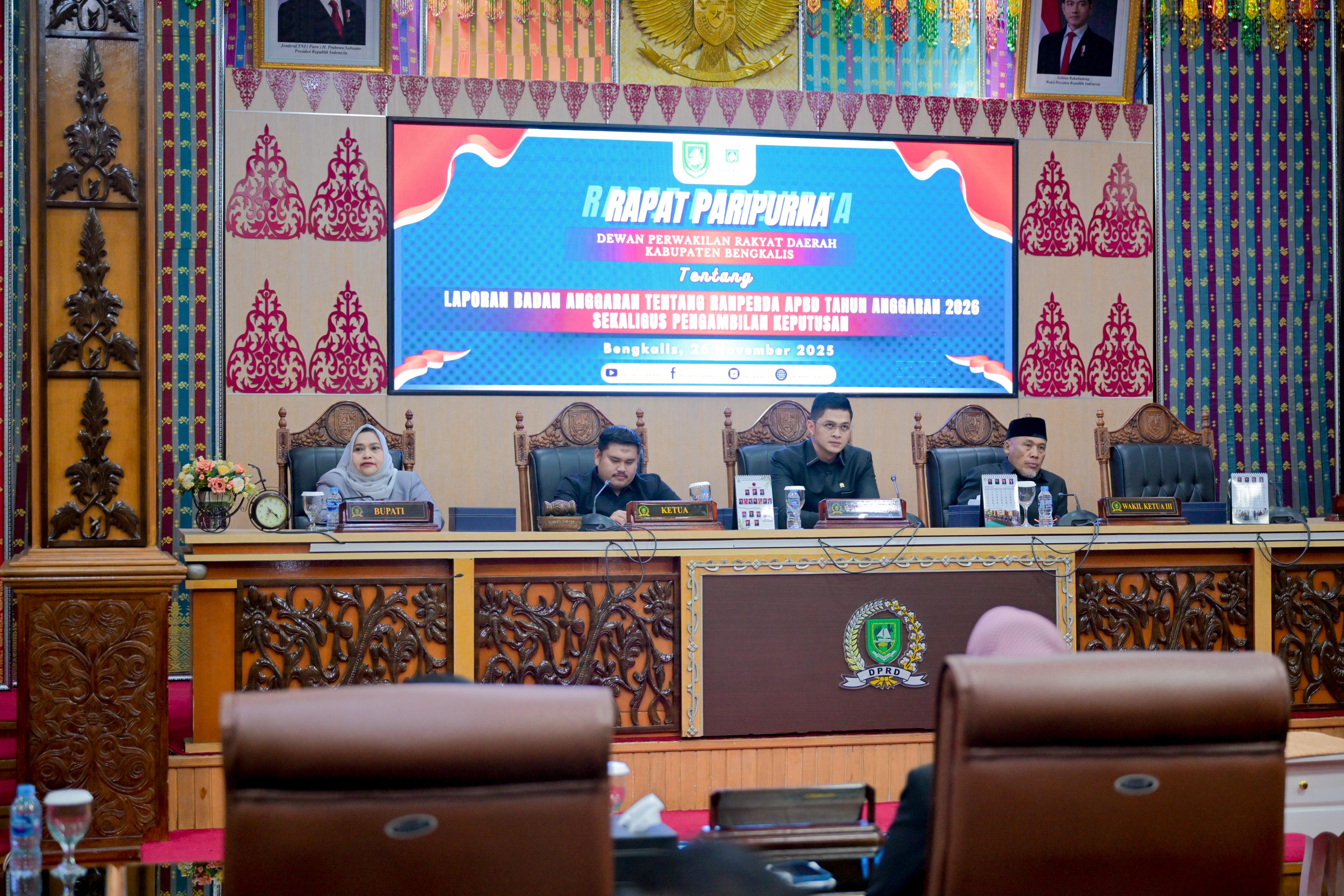 Dalam rapat paripurna Banggar atas RAPBD Bnegkalis Tahun 2026 mendengarkan penyampaian laporan dari Bupati Bengkalis, Kasmarni selaku Pemerintah daerah dalam mewujudkan proses perencanaan dan penganggaran daerah yang transparan, akuntabel, dan berorientasi pada kesejahteraan masyarakat.