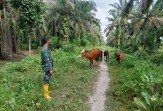 Babinsa Pratu DN. Simanungkalit, Lakukan Cek Hewan Ternak Sapi Antisipasi Penyakit PMK, di Kelurahan Gajah Sakti