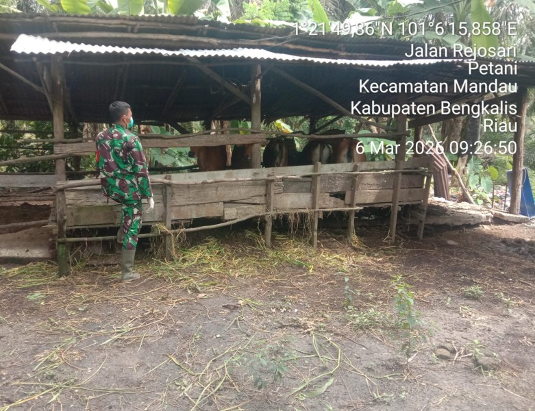 Babinsa Serka Alinaspi Lakukan Cek Hewan Ternak Kambing Antisipasi PMK, di Gajah Sakti, Mandau